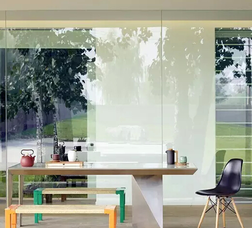 落地玻璃的使用令整個(gè)空間更加通透,有種室內(nèi)室外融為一體的錯(cuò)覺,伊姆斯餐椅做配飾顯出現(xiàn)代美感。