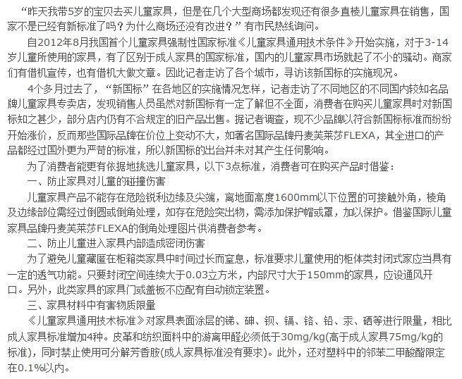 兒童家具新規(guī)則并沒有起到很大作用
