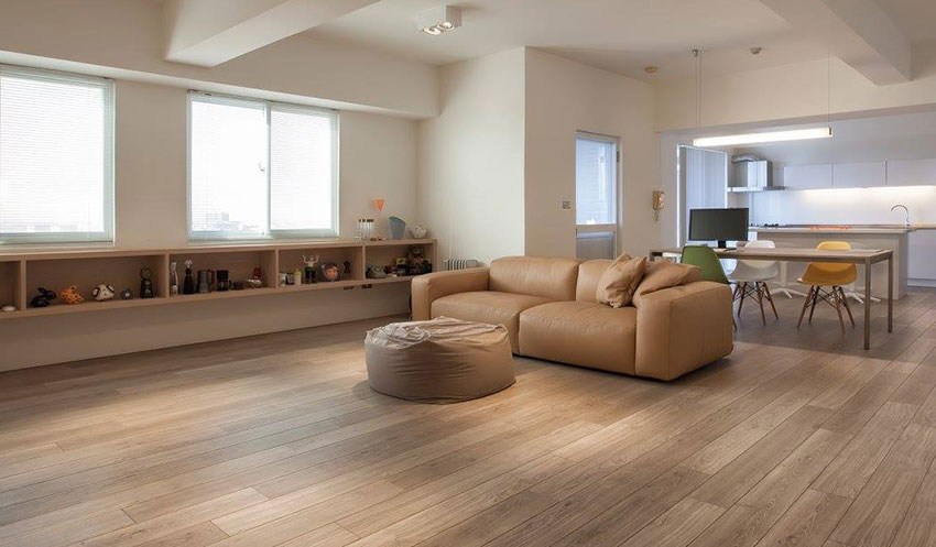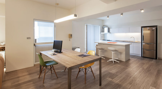 這是位于臺南的一處公寓改造項目,建筑已有16年的歷史,設(shè)計師整改后營造出了敞亮、舒適的居住環(huán)境。簡單的皮質(zhì)沙發(fā)和木桌成為了公共區(qū)域僅有的大型家具,采用去繁從簡的設(shè)計手法,將生活中可有可無的雜物去除,留下精美的小物點綴空間,隔墻被拆除后,視線得到延伸,從電視區(qū)至廚房所有景象一覽無余,加上大量木質(zhì)元素的運用,既舒適又清爽。