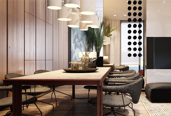 現(xiàn)代家具有著太多太多的出色組合,真皮和布藝是永遠(yuǎn)的話題。今天我們來看一下設(shè)計(jì)師S&T Architects如何完美運(yùn)用現(xiàn)代布藝組合沙發(fā)的。這是位于烏克蘭基輔的一套閣樓公寓,擁有良好的采光和寬敞的空間,放置大戶型布藝組合沙發(fā)再合適不過了。