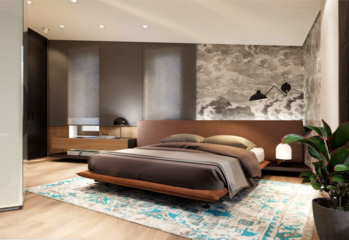 如你所見,當(dāng)布藝沙發(fā)遇上高貴的紫色,空間的低調(diào)奢華不言而喻。視線所及,還有木質(zhì)地板,混凝土墻面,鐵制儲(chǔ)物架,設(shè)計(jì)師運(yùn)用大量不同的材質(zhì),讓整個(gè)公寓看起來豐富而質(zhì)感。