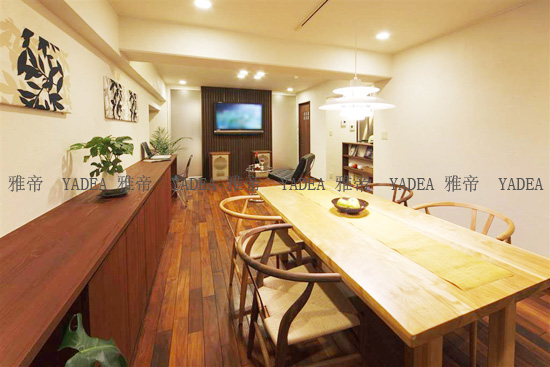 Y字椅、白盞燈、在加上綠色植物給就餐環(huán)境增添了一絲浪漫情調(diào)。