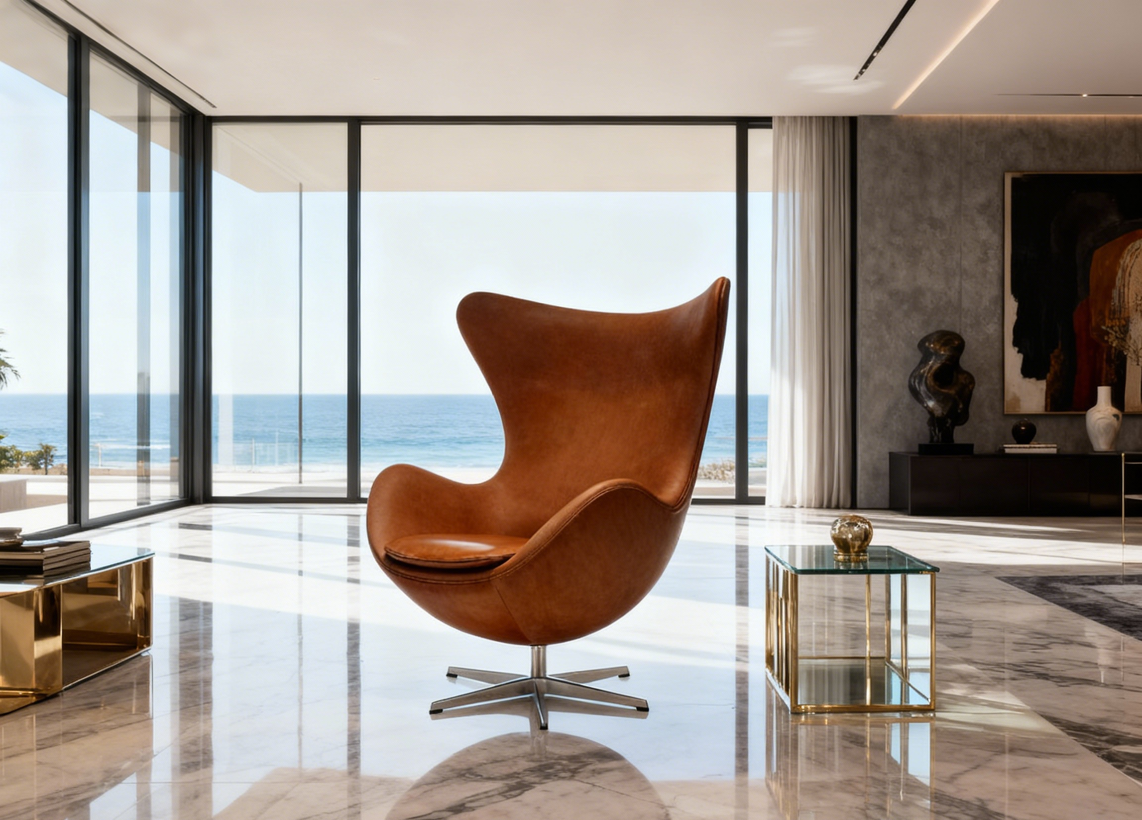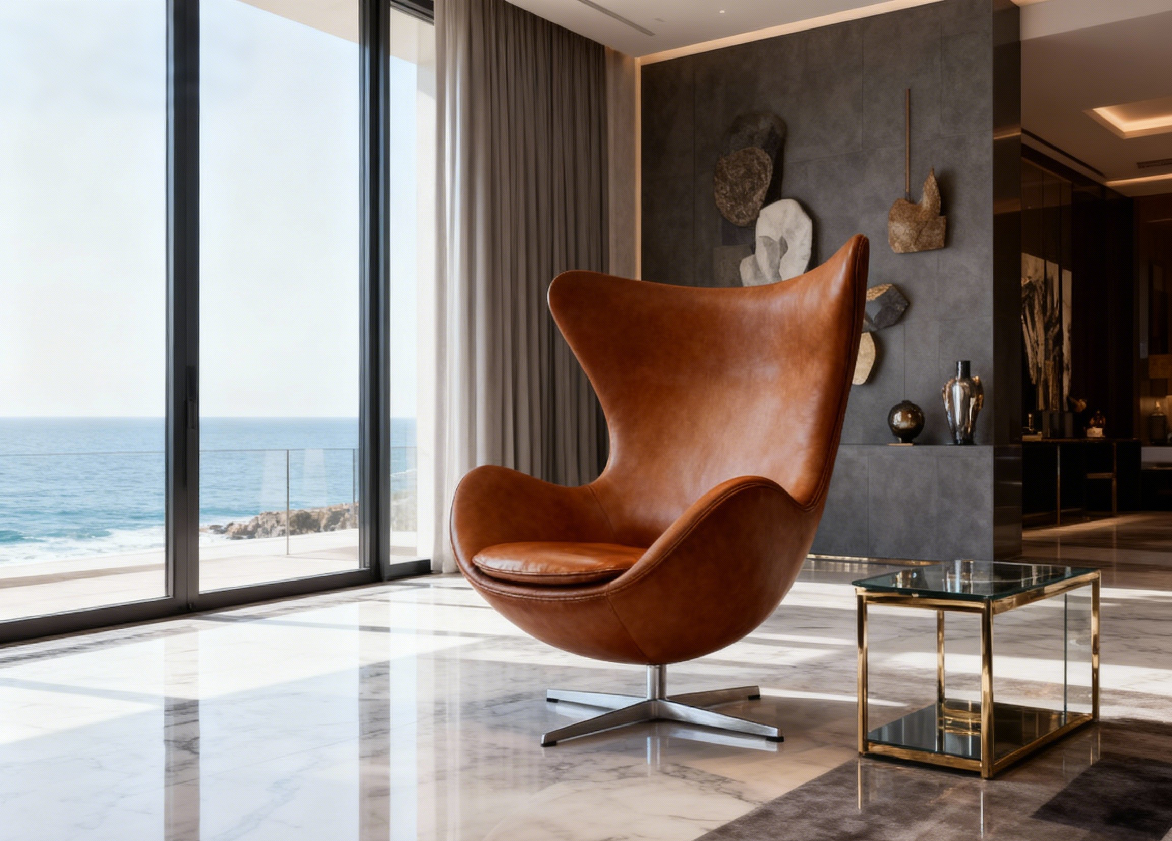 案例參考:我們曾為上海一位設(shè)計師的私宅定制蛋椅AggSofa,客戶選擇啞光不銹鋼架搭配焦糖色小黃牛皮,搭配侘寂風(fēng)微水泥墻面與亞麻窗簾,最終呈現(xiàn)的空間被贊為“流動的藝術(shù)品”。