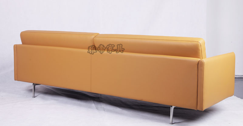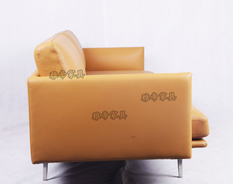 基本材質(zhì)描述:內(nèi)置木架,全進(jìn)口青皮,高彈海棉,布藝,不銹鋼腳。